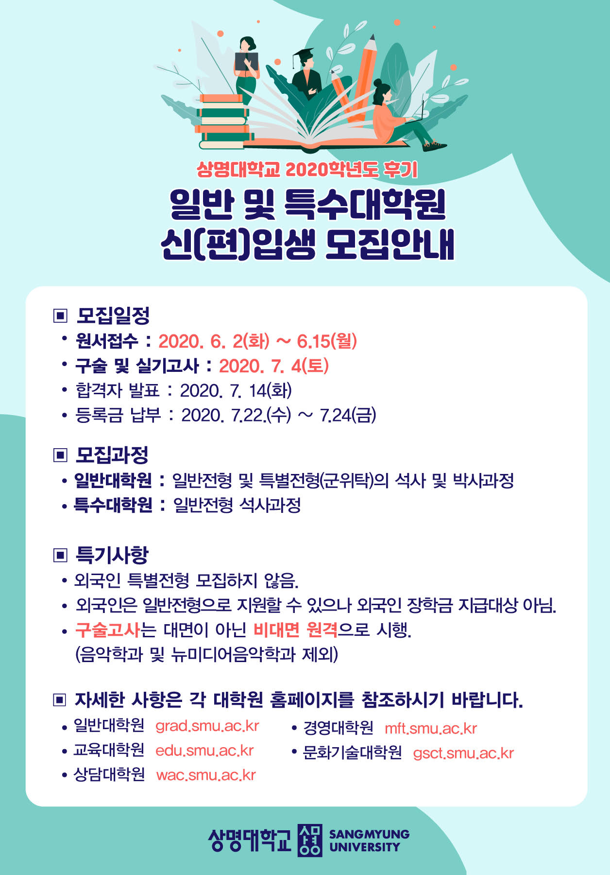 - [2020학년도] 일반대학원 무용학과 후기 신[편]입생 모집안내 (특별전형제외)